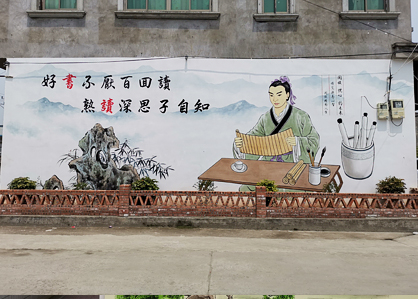 溫州市墨客墻繪藝術(shù)有限公司主要從事有個(gè)性有創(chuàng)意的家居裝飾墻繪、幼兒園卡通彩繪、KTV酒吧主題墻繪、3D立體墻繪、習(xí)哥彭姐文化大革命的城鄉(xiāng)文化宣傳墻繪等,當(dāng)然還有我們獨(dú)歩武林的高墻墻繪藝術(shù)!畫高墻有時(shí)一個(gè)頭像就有兩米,不僅僅是大了型不好把握,一般習(xí)慣在陸地作戰(zhàn)的繪畫者往往上去后會(huì)讓你唱起一首歌:“三月里的小雨,淅瀝瀝瀝......瀝瀝……淅瀝瀝瀝下個(gè)不?!本褪谴魃夏虿粷?,他們也會(huì)在上面演示帕金森。我們施工時(shí)下面觀看的人如少女初戀般心跳,欣賞的人似紂王品酒觀妲己跳舞一樣陶醉。連村中惡犬也為我們搖尾吶喊:“……墨客墻繪……神勇無(wú)畏!